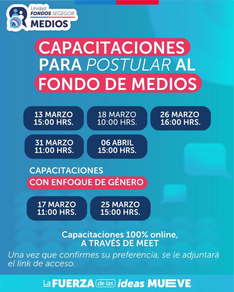 Además, este año se realizarán dos capacitaciones especiales sobre enfoque de género en proyectos comunicacionales, orientadas a fortalecer la incorporación de esta perspectiva en las iniciativas postuladas al Fondo.