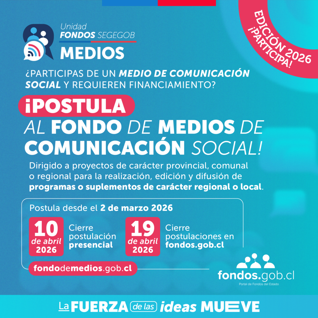 A partir de hoy, lunes 02 de marzo, se iniciaron las postulaciones al Fondo de Fomento de Medios de Comunicaci贸n Social Regionales, Provinciales y Comunales, en su versi贸n 2026.