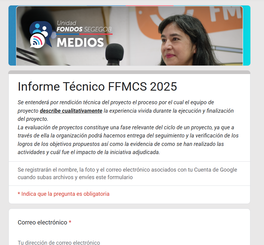 El medio de comunicación adjudicatario, deberá presentar un informe técnico final y un informe de rendición financiero final. El primero de ellos, el Informe técnico, deberá describir la forma en que ejecutó el proyecto, incluyendo desarrollo de actividades y medios de verificación empleados con tal finalidad. El formulario de rendición creado para estos efectos será proporcionado por el Ministerio y deberá ser rellenado digitalmente a través del link: https://fondodemedios.gob.cl/informe-tecnico-rendicion/